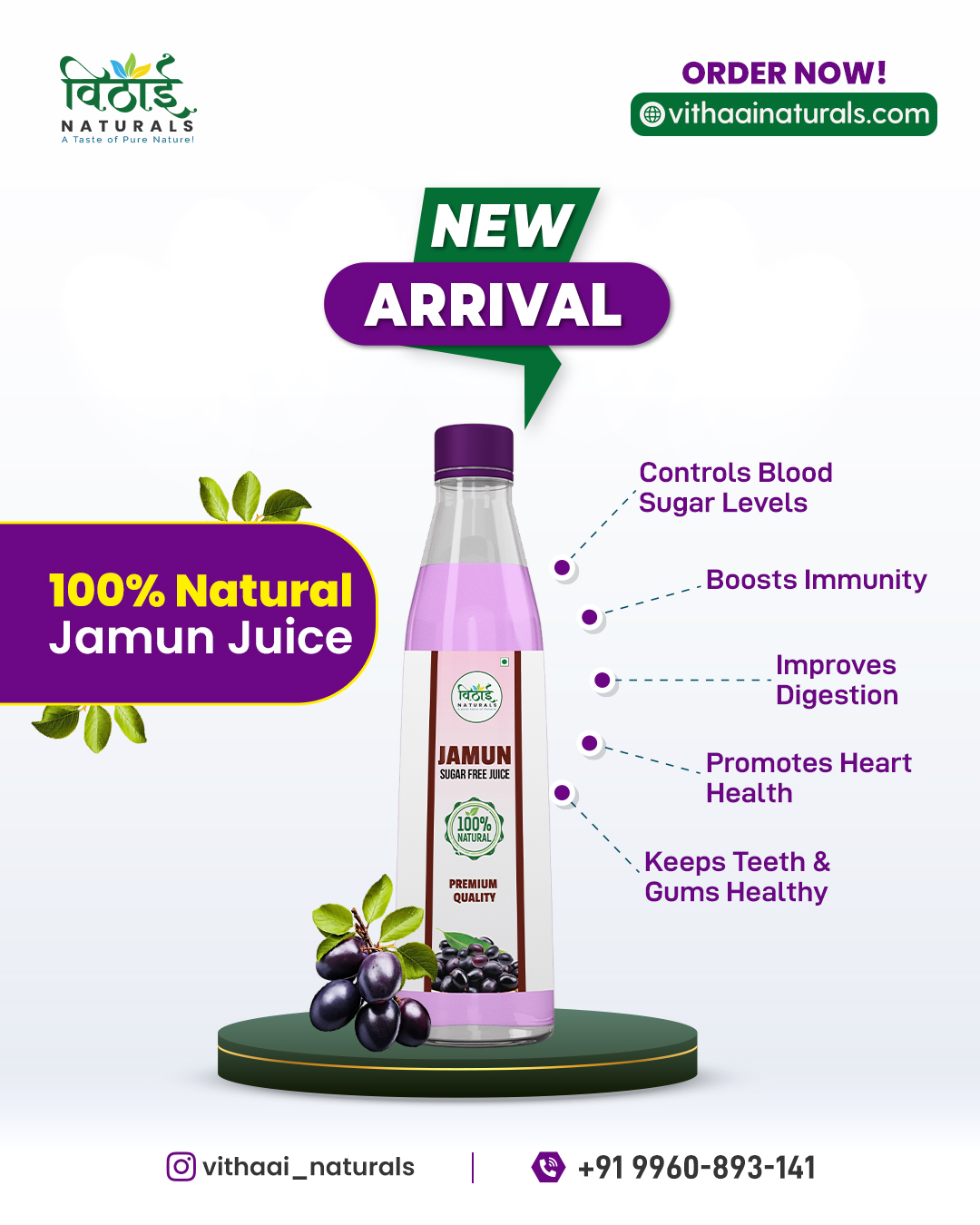 Harness the ancient wisdom of Ayurveda with Vithaai Natural Jamun Juice. Extracted from freshly harvested, deep purple Indian Black Plums (Jamun), this juice is renowned for its specific health benefits, particularly in managing blood sugar. Our commitment to purity means we deliver a minimally processed, potent juice that captures the full, slightly astringent flavor and nutritional integrity of the fruit—bringing you a powerful daily tonic straight from nature.